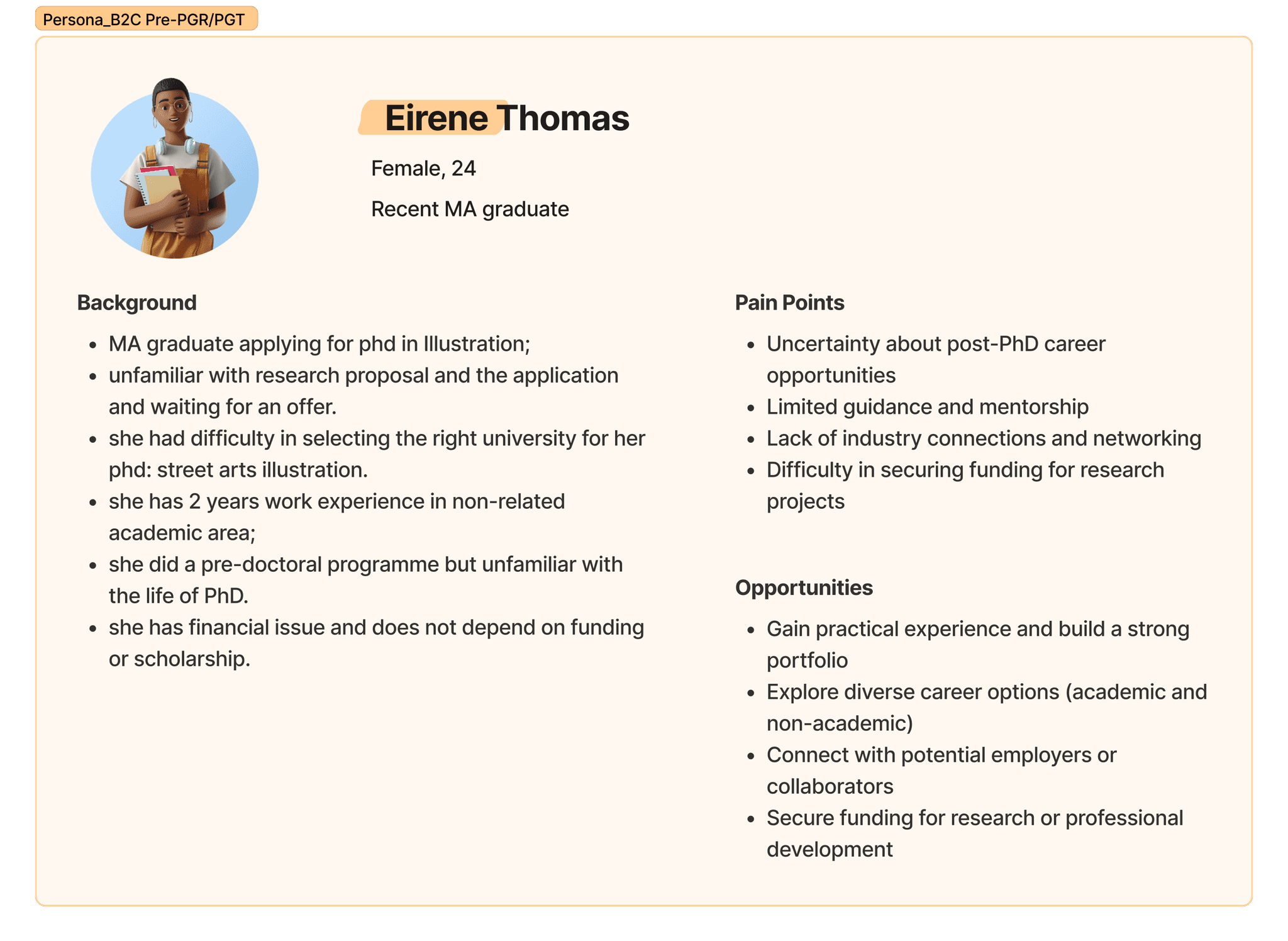 The B2C personas I created based on insights from the primary research