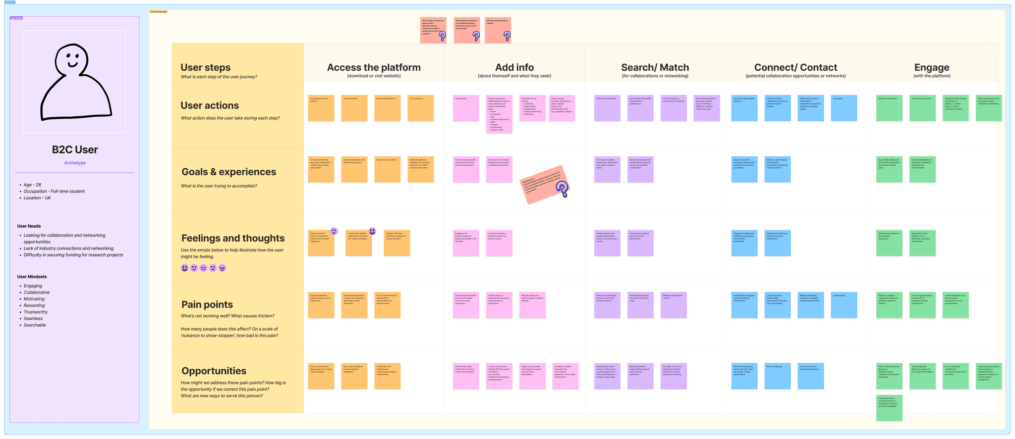 The B2C journey map that captured how they would interact with the platform