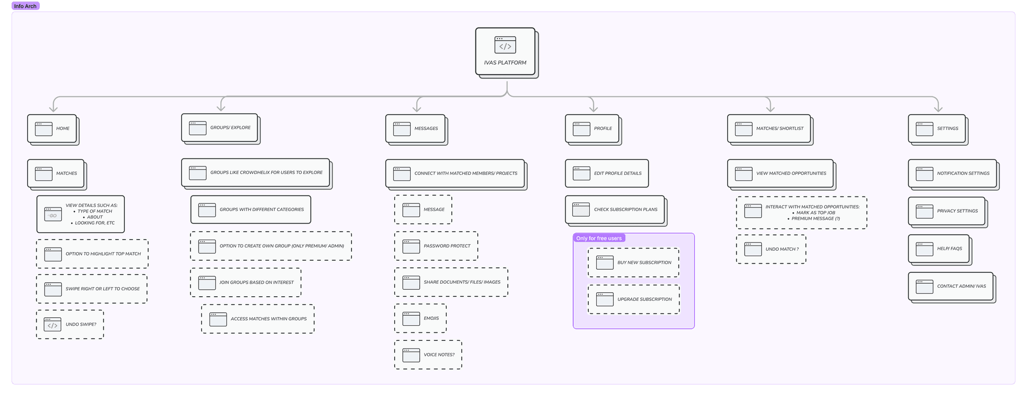 We created a flowchart to establish the information architecture of the platform