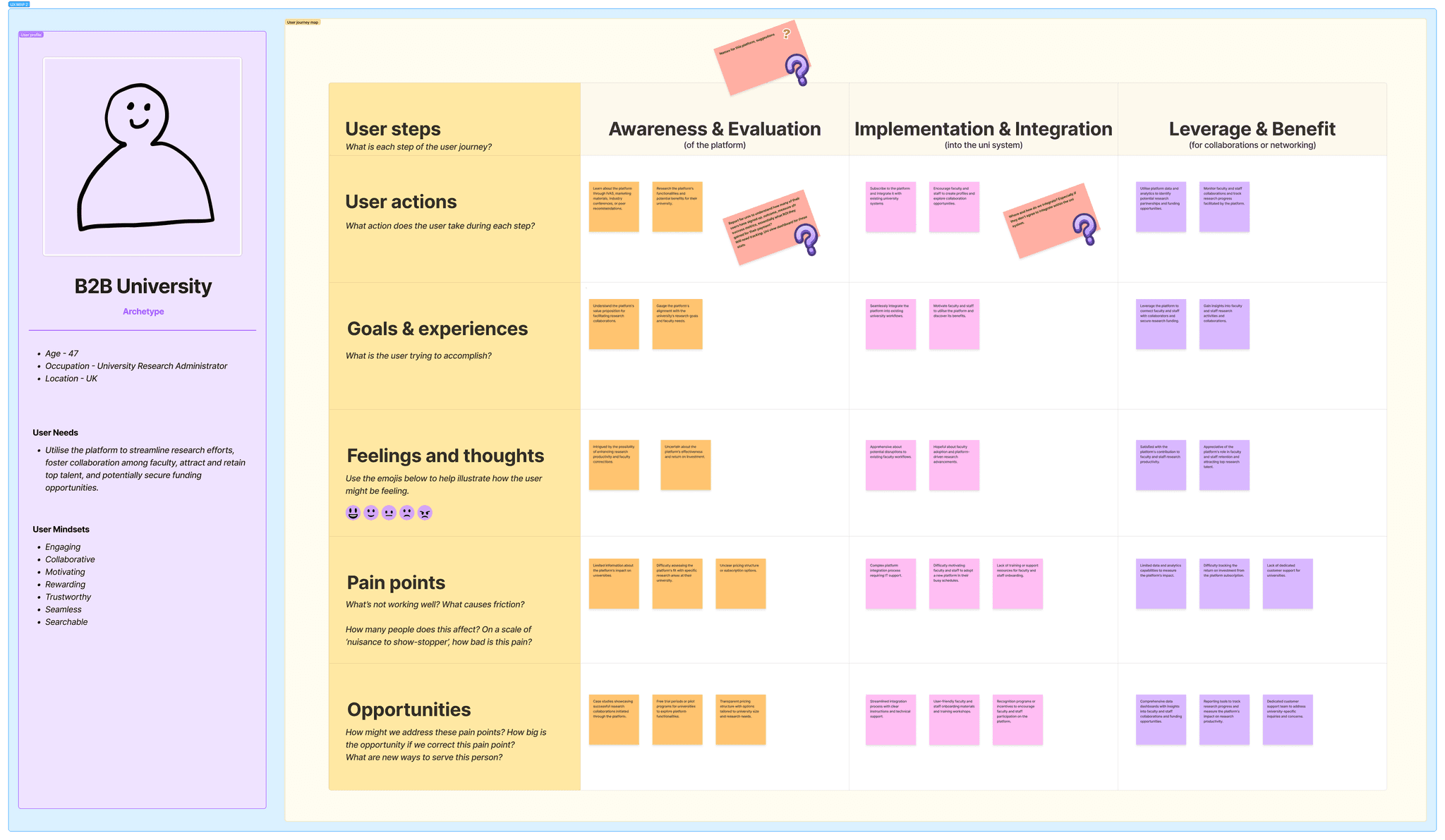 The B2B journey map that captured how they would interact with the platform