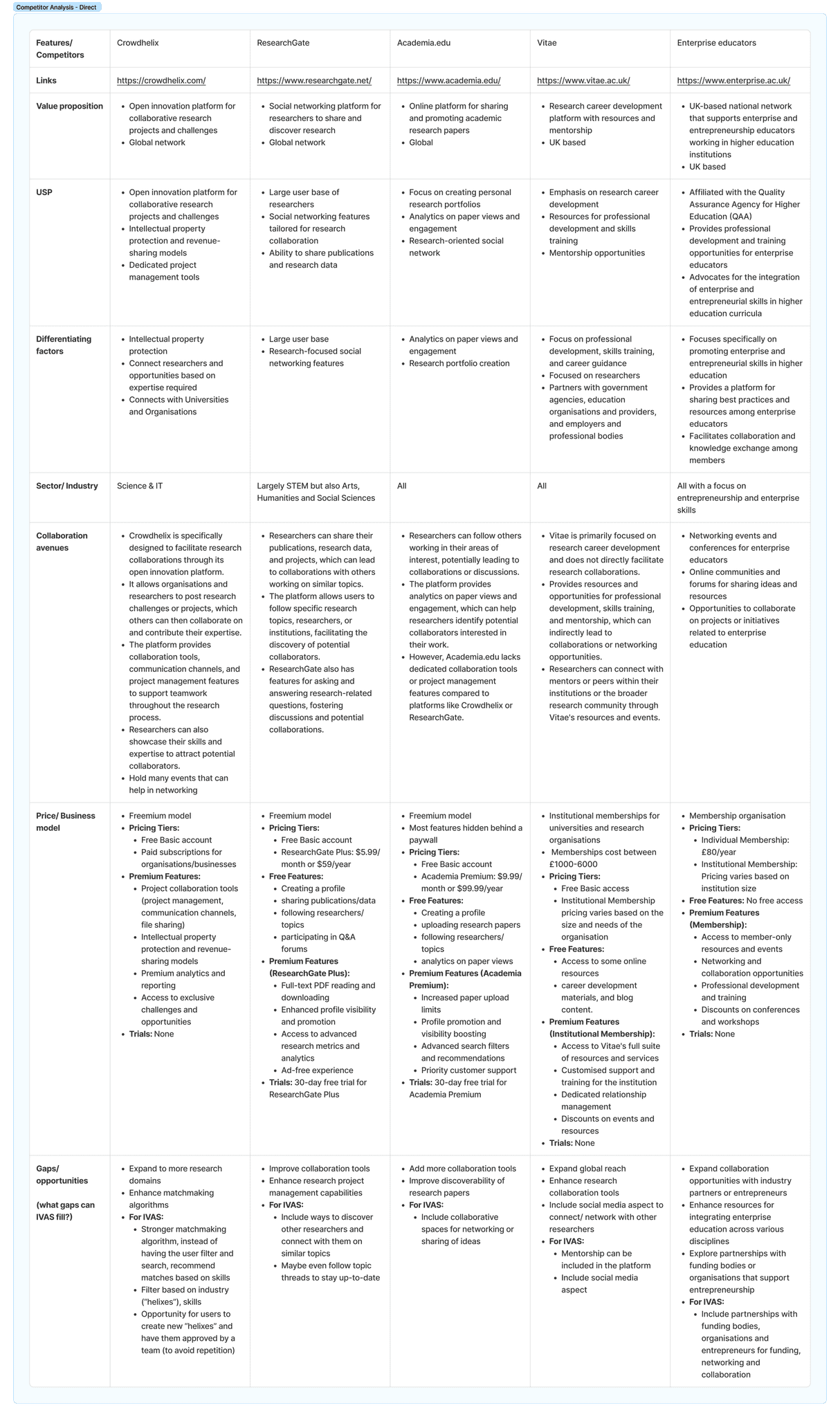 This competitor review gave me two things. First, it validated that platforms like this could succeed, because they already did in other fields. Second, it showed that simply copying their model would not work for IVAS. The design had to reflect the specific needs and culture of non-STEM academics.